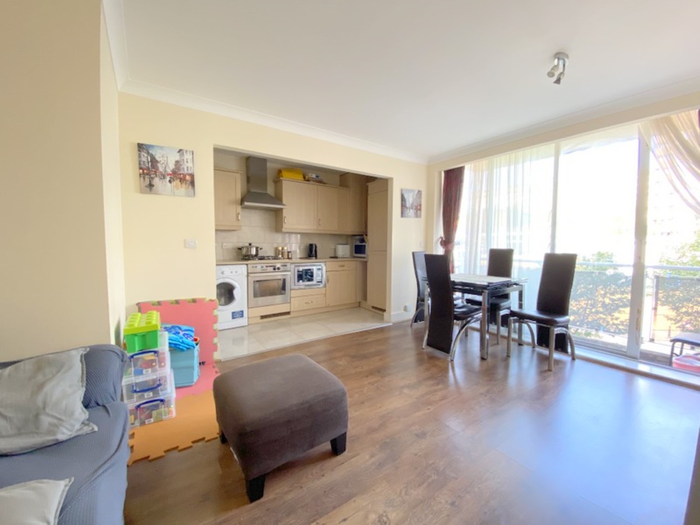 This bright and spacious 1-bedroom apartment is located in the prestigious North Bank development, offering a comfortable and convenient London home. The living area is filled with natural light, providing a welcoming space for relaxation and entertaining.